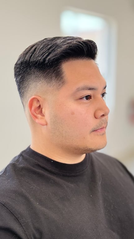 Fade to the barbershop beat, styled with beauty salon flair.