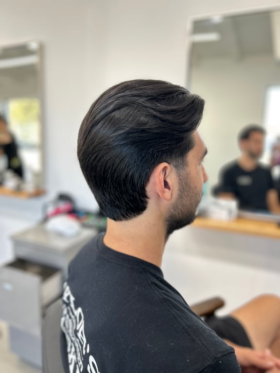 Fade to the barbershop beat, styled with beauty salon flair.
